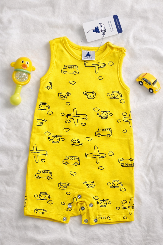 رامپر رکابی بیبی گپ زرد طرح ماشین 👶✈️🚗