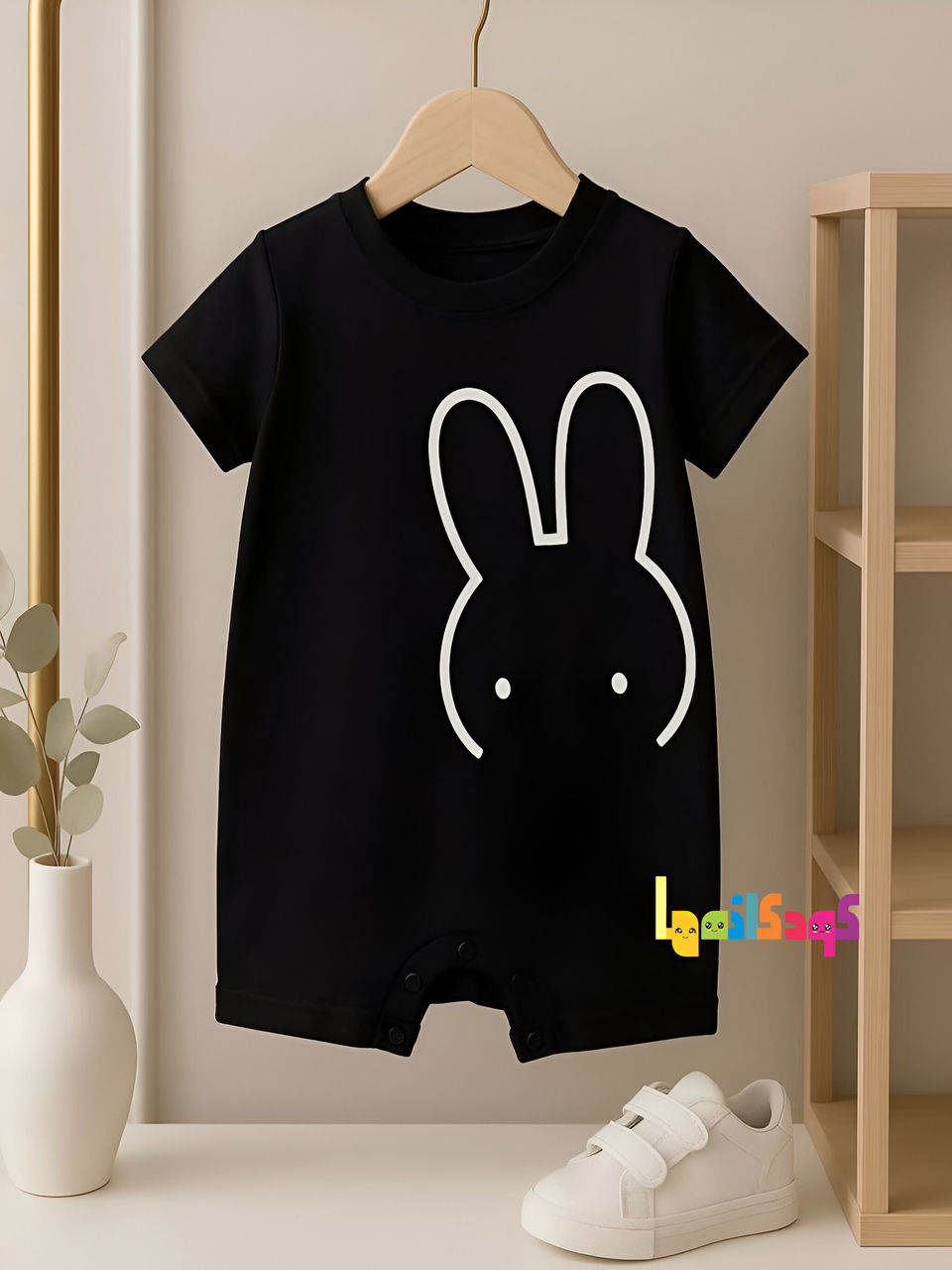 رامپر نوزادی بیبی گپ مشکی طرح خرگوش | پنبه یکرو سوپر کامپکت | ۶ ماه تا ۳ سال