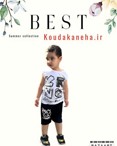 تاپ شلوارک سفید مشکی کودکانه سایز ۴۰ و ۴۵